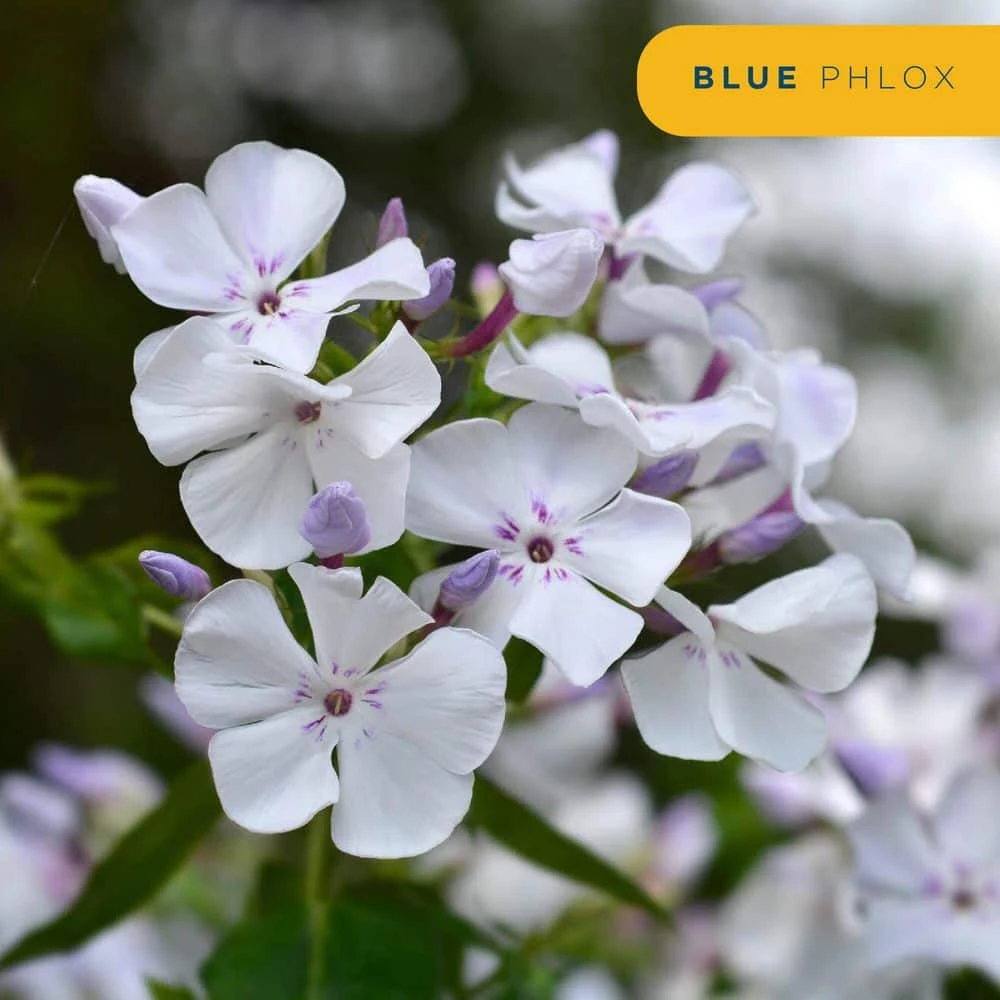 - Flame blue phlox begins blooming in early summer and continues into early fall, it shows off fragrant clusters of soft blue flowers that attract hummingbirds and butterflies, it grows about 18 in. tall and wide, zones 4-8